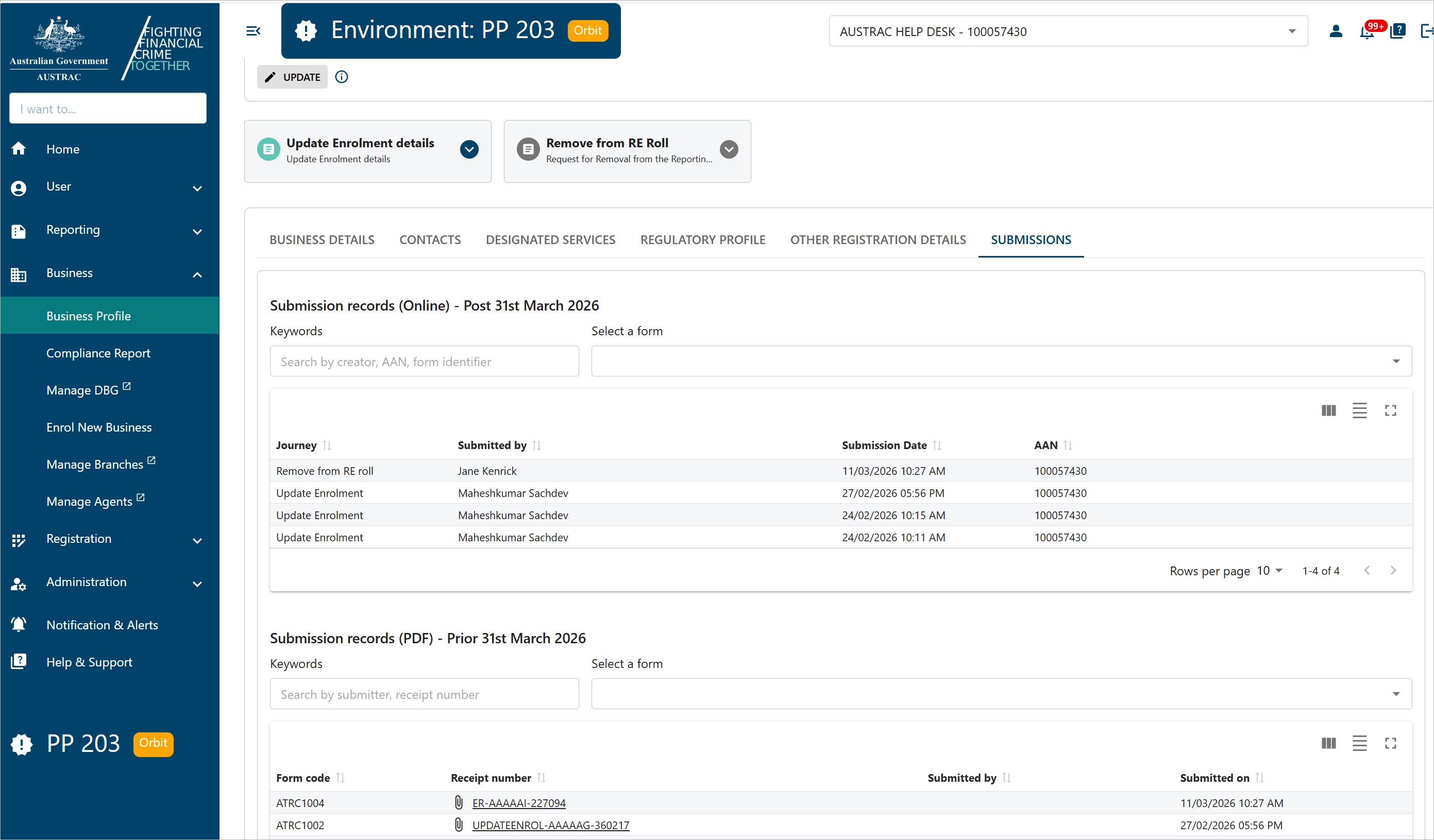 The instructions on this page are for when you’re logged in to AUSTRAC Online.