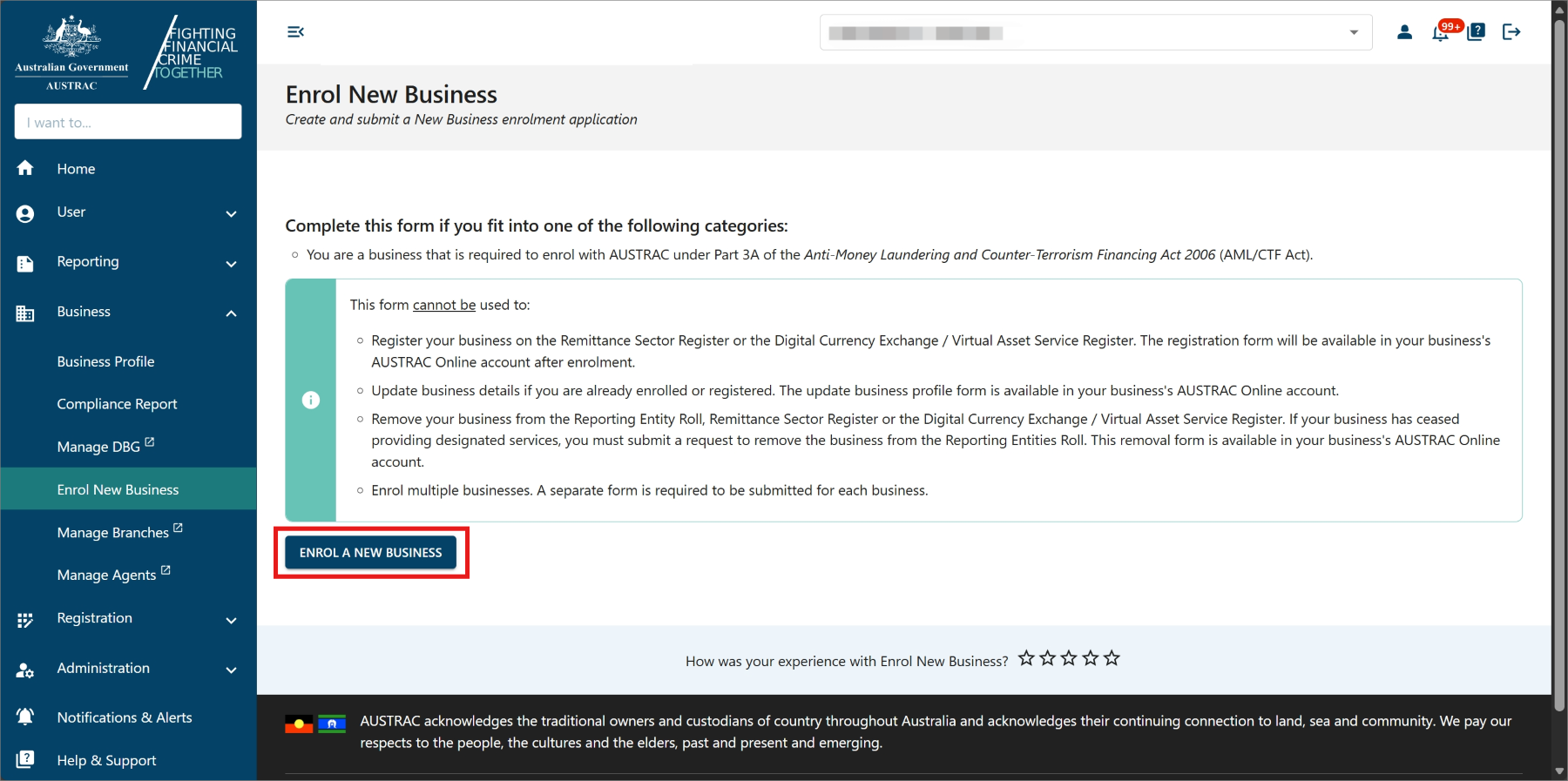 Complete the Enrol a new business form